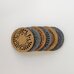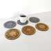 Minimalistinio stiliaus padėkliukai skirti arbatos ar kavos puodeliams. Pagaminti iš tvirto pagrindo, dengto natūraliu ąžuolo lukštu bei pilko 4 mm storio impregnuoto filco. Medis impregnuotas natūraliu bičių vašku bei aliejum. Rinkinį sudaro 6 skirtingi padėkliukai (3 pagaminti iš medžio, 3 - iš filco).
