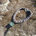 Supintos medvilninės virvelės vėrinys su žaliu mediniu pakabuku, vertinančiai natūralumą ir išskirtinumą.