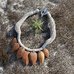 Vėrinys iš natūralaus riešutmedžio, dekoruotas tamsinto sidabro spalvos metalo detalėmis. Medis pjaustytas, šlifuotas rankomis, impregnuotas natūraliu bičių vašku bei kokoso aliejumi. Papuošalas turi gražų masyvų užsegimą.