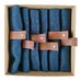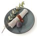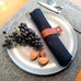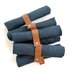 Servetėlės pagamintos iš minkštinto lino, natūralios pilkos arba tamsiai mėlynos spalvos.