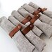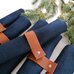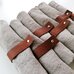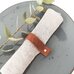 Rankų darbo žiedai pagaminti iš natūralios rudos spalvos odos (gali pasibraižyti, bet čia atsiskleidžia jos tikrasis grožis!), odoje ranka iškalti žodžiai-linkėjimai, galima rinktis lietuvių (mylėti, atrasti, svajoti, tikėti, kurti, mėgautis) arba anglų kalba (love, dream, believe, create, discover, enjoy). Renkantis 4 vnt. komplektą, iškalti žodžiai: mylėti, atrasti, svajoti, mėgautis.