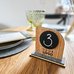 Minimalistinio stiliaus stovelis su apskritimu, nudažytu juodais Tikkurila dažais, skirtais mokyklinėms lentoms. Šis gaminys tinka, norint dažnai keisti informaciją, užrašyti stalo numerį, rezervacijos laiką, prekės kainą ar kitą informaciją. Be papildomo mokesčio išgraviruosime jūsų įmonės logotipą, tekstą ar jaunavedžių inicialus. Galite pasirinkti medžio spalvą.