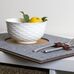 Padėklas pagamintas iš pagrindo faneruoto natūraliu ąžuolo lukštu bei pilko 4 mm storio impregnuoto filco. Medis impregnuotas natūraliu bičių vašku bei aliejum.