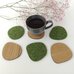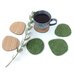 Ovalių formų žali padėkliukai "Akmenėliai" arbatos/kavos puodeliams iš medžio ir filco, 6 vnt.