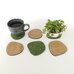 Minimalistinio stiliaus padėkliukai skirti arbatos ar kavos puodeliams. Pagaminti iš tvirto pagrindo, dengto natūraliu ąžuolo lukštu bei žalios spalvos 4 mm storio impregnuoto filco. Medis impregnuotas natūraliu bičių vašku bei aliejum. Rinkinį sudaro 6 skirtingi padėkliukai (3 pagaminti iš medžio, 3 - iš filco).