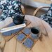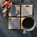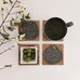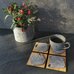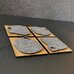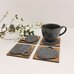 Minimalistinio stiliaus kvadratiniai padėkliukai skirti arbatos ar kavos puodeliui. Pagaminti iš tvirto pagrindo, dengto natūraliu ąžuolo lukštu bei pilko 4 mm storio impregnuoto filco. Medis impregnuotas natūraliu sėmenų aliejum. Rinkinį sudaro 4 padėkliukai. Galima įsigyti kartu su didesniu (40x21 cm) serviravimo padėkliuku.