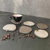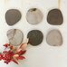 Komplektą sudaro 3 vnt. rusvai rudos ir 3 vnt. rustic margos šviesios spalvos skirtingų formų padėkliukai.