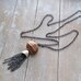 Minimalistinis pakabukas ant ilgos grandinėlės, vertinančiai natūralumą ir išskirtinumą.