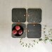 Padėkliukas pagamintas iš plono natūralaus akmens sluoksnio, natūralios odos ir pilko filco pagrindo, kuris apsaugos Jūsų stalo paviršių nuo braižymosi. Medžiagos impregnuotos, todėl padėkliukas tinkamas naudoti ir lauke.