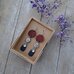 iš ovalo medžio lukšto detalių. Medis pjaustytas, šlifuotas rankomis, impregnuotas natūraliu bičių vašku bei kokoso aliejumi. Auskarai dekoruoti metalo detalėmis.